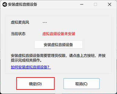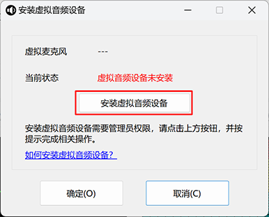 2、点击 “安装虚拟音频设备”按钮