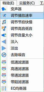 第三步、选择菜单“特效 -> 调节播放速率”