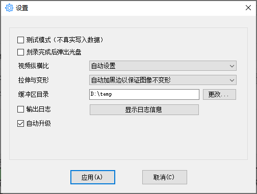 请注意:软件默认的缓冲区位于系统的临时目录下,当您C盘的剩余空间不足时,您可将缓冲区目录更改到有较大剩余空间的其它磁盘下。根据您刻录任务的不同,所需要的缓冲区大小也不同。一般而言,对于DVD项目,您应有8.6GB的剩余空间;对于蓝光项目,您应有蓝光光盘空间2倍的剩余空间。