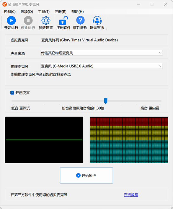 开始运行后,软件会自动读取对应物理麦克风的声音,然后对声音进行变声处理,最后传输到虚拟麦克风设备中。