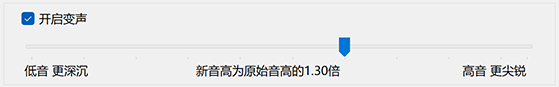 选中“开启变声”复选框,并根据需要设置音高的变换范围。一般而言,音高越低声音越低沉,音高越高声音越尖锐。如果您想要女声变男声,把音高调低;如果您想要男声变女声,把音高调高;如果您想要变成可爱的娃娃音,把音高调到可以接受的最高。
