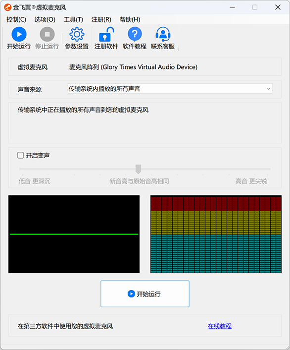 开始运行后,软件会将您此时听到的所有声音都传输到虚拟麦克风设备中。