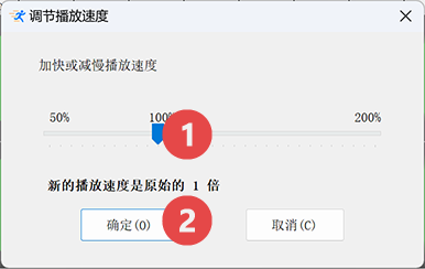 您可以根据您的个人喜好,选择新的播放速率,目前软件允许的选择范围为50%到200%。