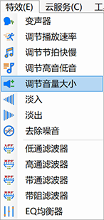 第三步、选择菜单“特效 -> 调节音量大小”