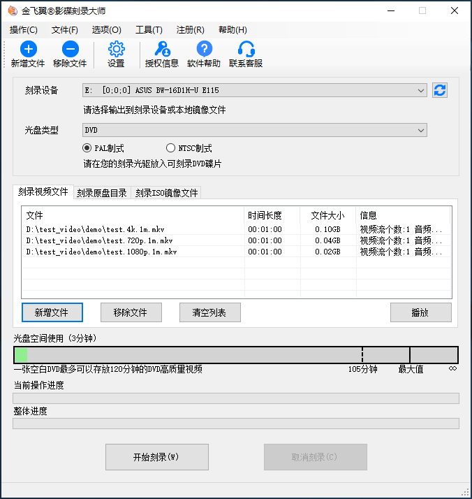 添加完成所有视频文件后,查看一下光盘空间的使用情况,确保没有超过当前光盘允许的最大容量。